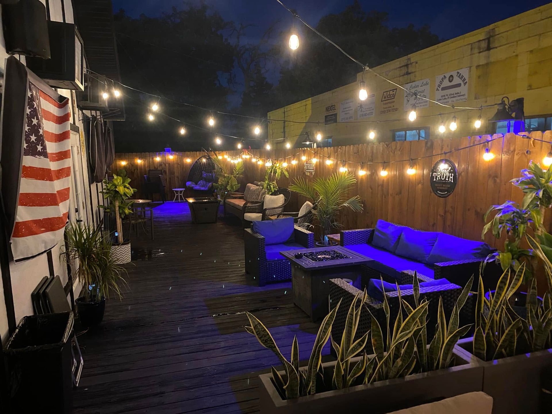 You'll find our spacious outdoor patio ideal for year-round gatherings, complete with a cozy firepit that adds warmth to cooler evenings. Our vintage sports bar vibe features 11 TVs with sports playing all day, every day, so you never miss the action while enjoying your meal.